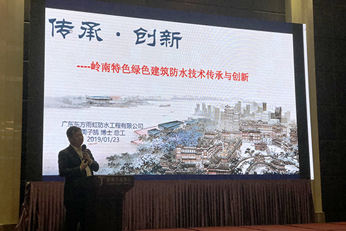 东方九州酷游ku游登录平台工程建材集团华南区总工程师周子鹄以“岭南特色绿色修建防水手艺传承与立异”为主题做绿色修建行业分享,重点先容TPO单层屋面系统、莳植系统、宜顶工业化妆配式屋面系统三大绿色系统防水手艺,通过对其系统结构、环保性能、产品特点优势等多方面解说,增进与会职员对防水质料与手艺的进一步熟悉。