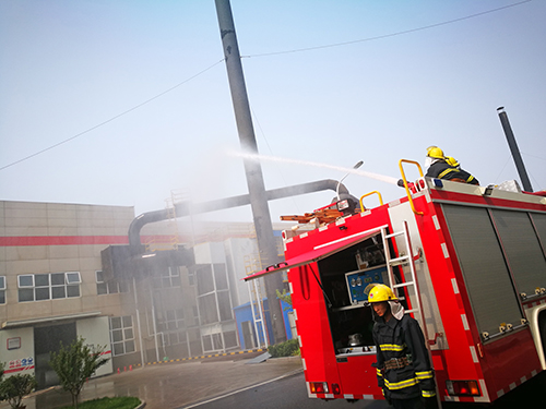 28日下昼14时50分,随着沥青卷材环保装置火灾警报突然响起,唐山生产基地连忙启动火灾扑救及应急疏散预案。应急小组迅速就位,全体员工有序撤离;唐山市丰南区消防大队官兵接到报警电话后抵达现场开展灭火救援,消防演习取得圆满乐成。